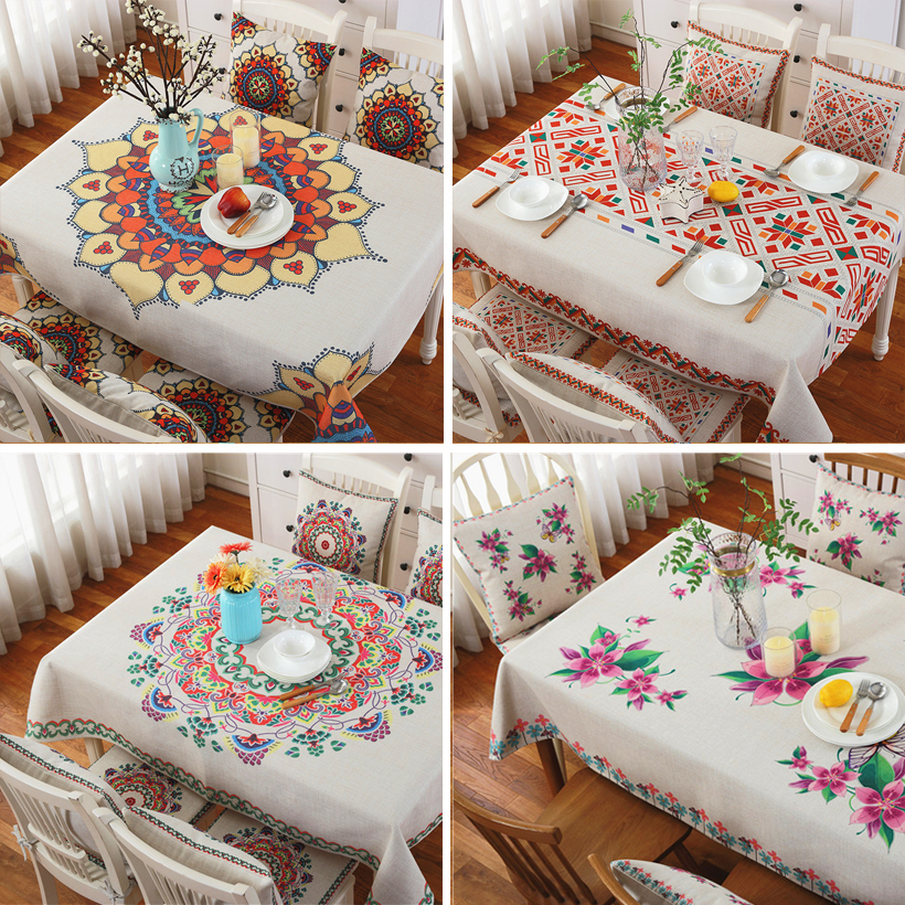 New Chinese ethnic style New Zealand thick cotton linen table cloth hotel bar coffee table round table cloth square tablecloth