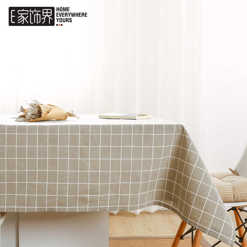 Simple modern dining room coffee shop tablecloth fabric cotton linen small fresh plaid Japanese table cloth round table
