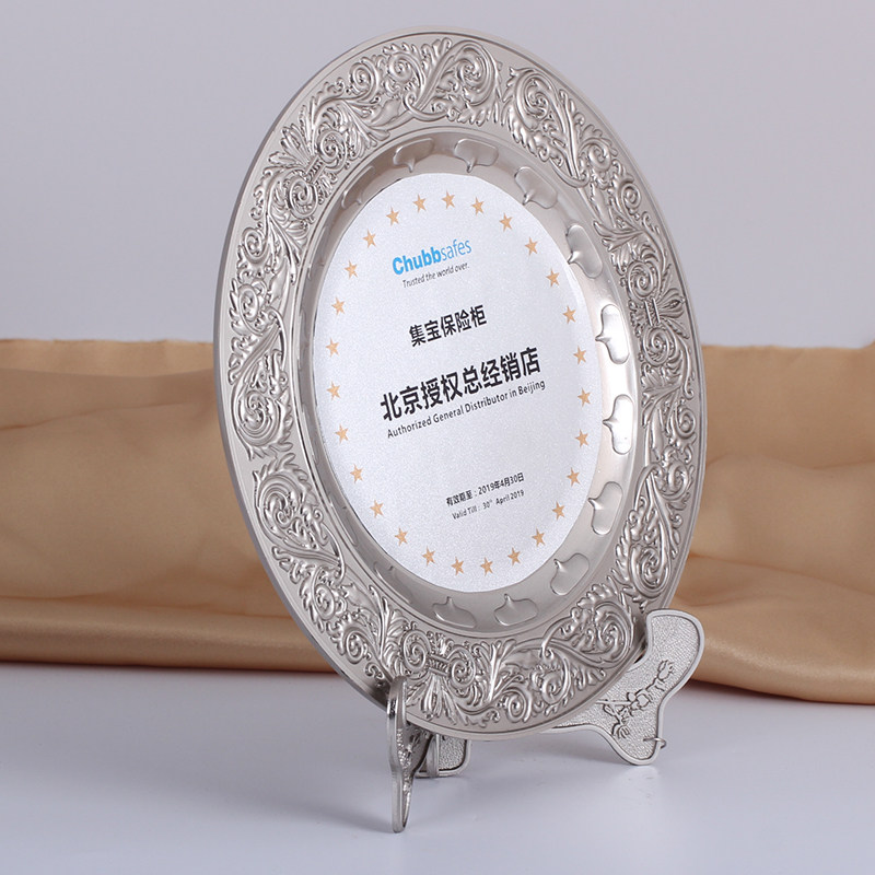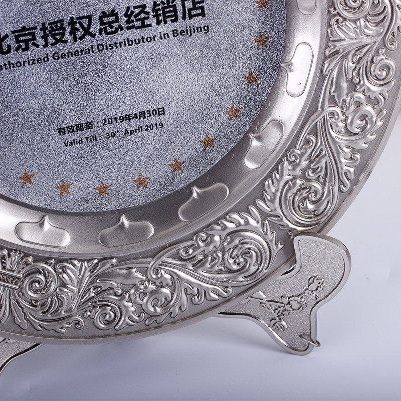 Metal Award Disc Customized Silver Disc Award Medal Set As Dealer Authorization Card Upscale Honor Plaque Silver Leaf