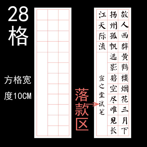 20-grid 28-grid 56-grid calligraphy grade examination work creation practice with inscription raw Xuan semi-cooked Xuan square grid rice paper