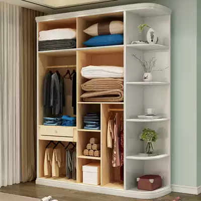 New Chinese style solid wood wardrobe rubber wood three four five six door combination wooden wardrobe corner open door bedroom wardrobe