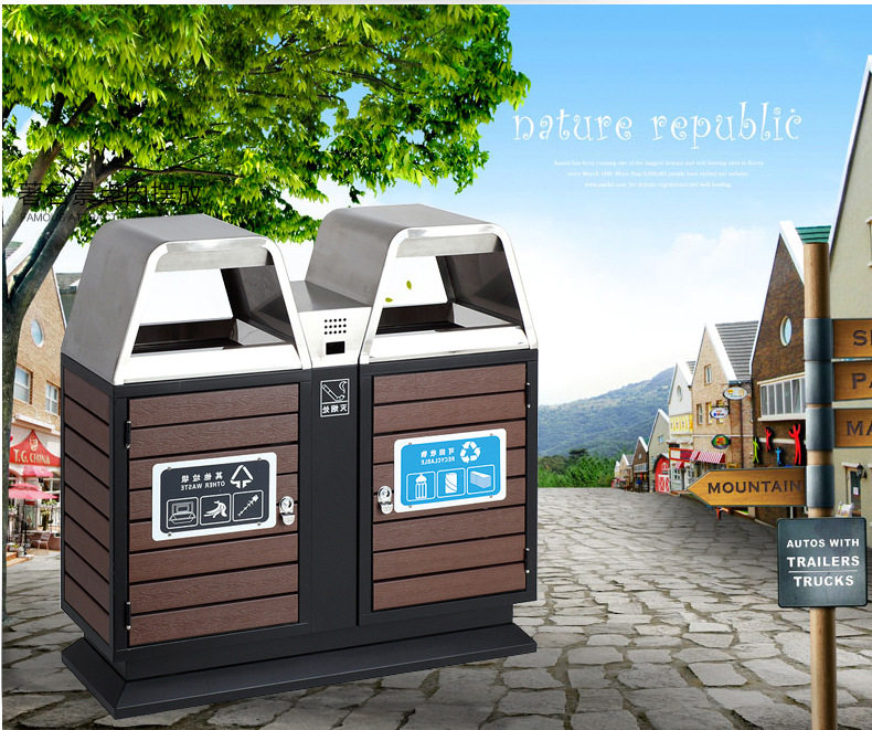 Stainless Steel Outdoor Bins Fruit Leather Case Steel Wood Park Community Classified Dumpster Outdoor Sanitation housing estate