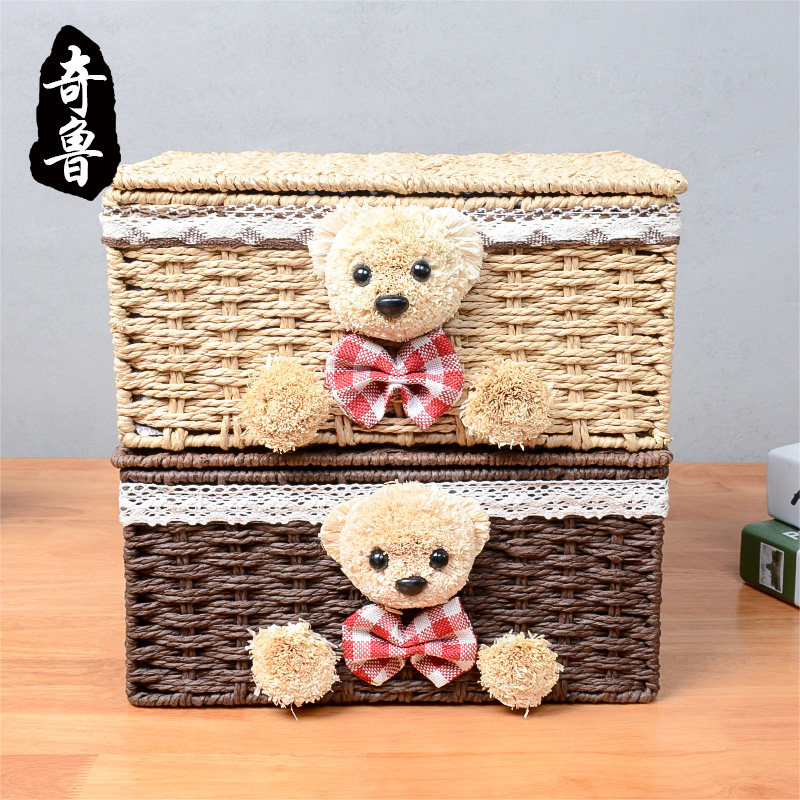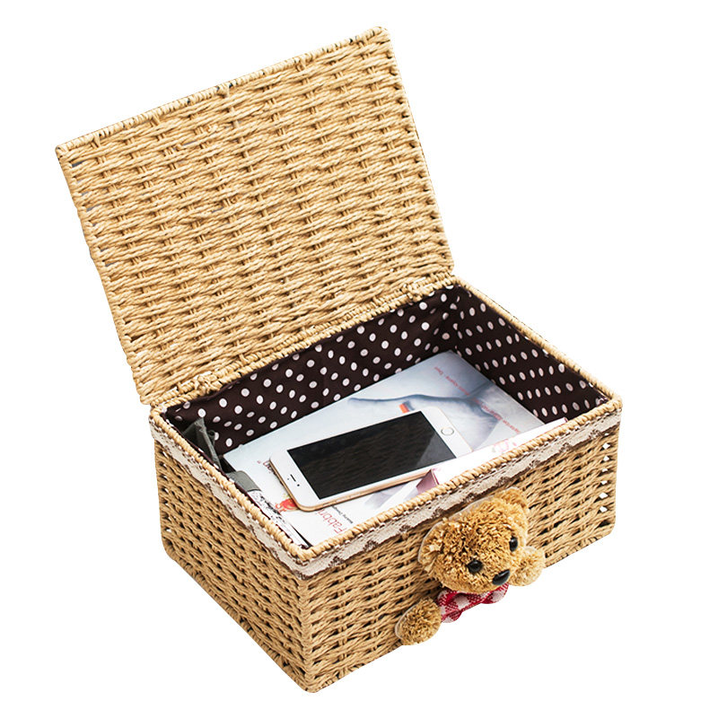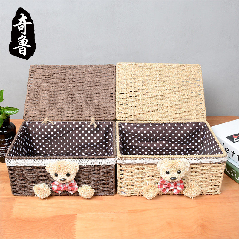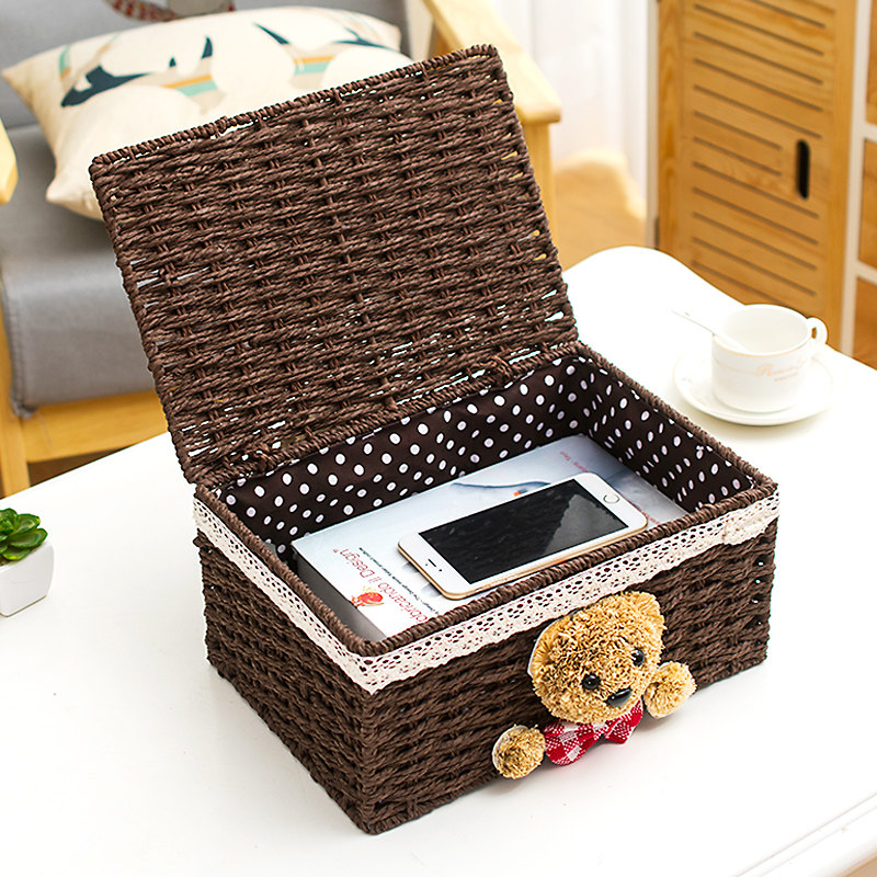 Chirugrass knitted containing frame rattan chic cloth art with cover containing box finishing box cosmetic containing box table top containing basket