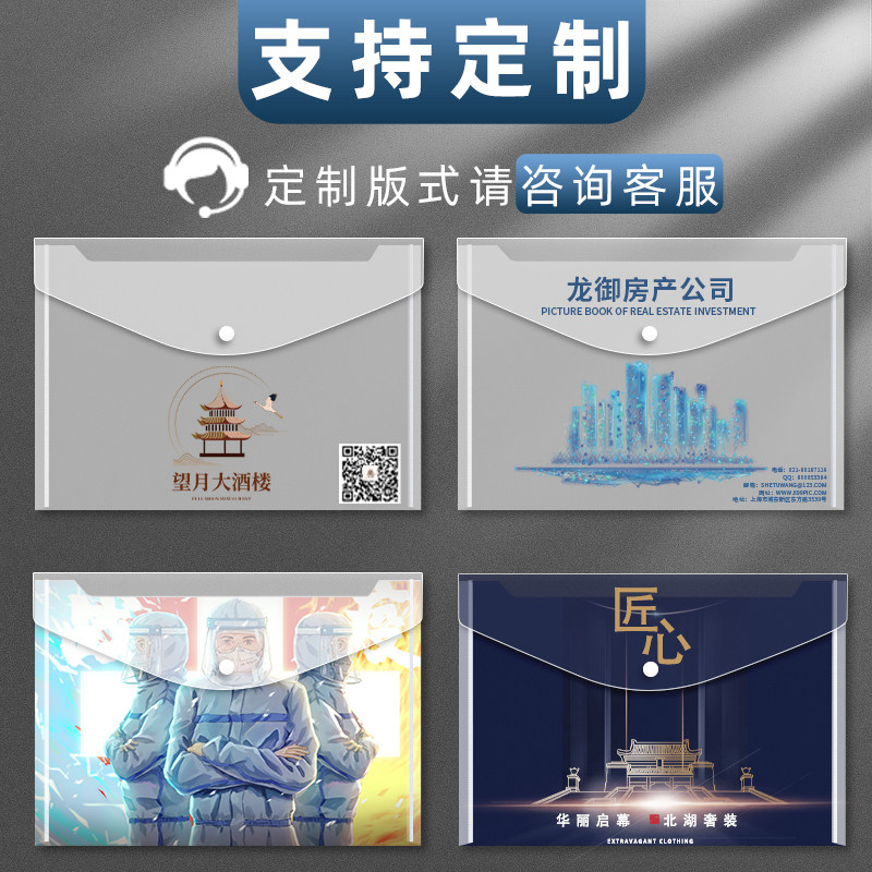 A4 document bag can be customized transparent plastic file thickened large capacity folder information package Students with multi-layer paper storage Business office supplies Stationery snap test briefcase
