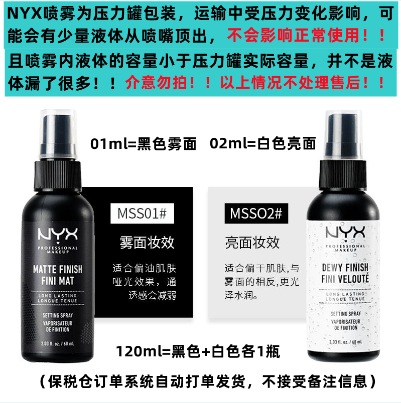 Bonded spot NYX makeup spray black and white without making-up mist matte oil control 60ml waterproof and sweat resistance 3