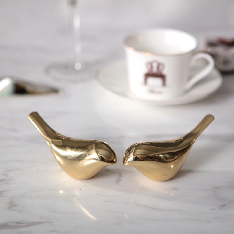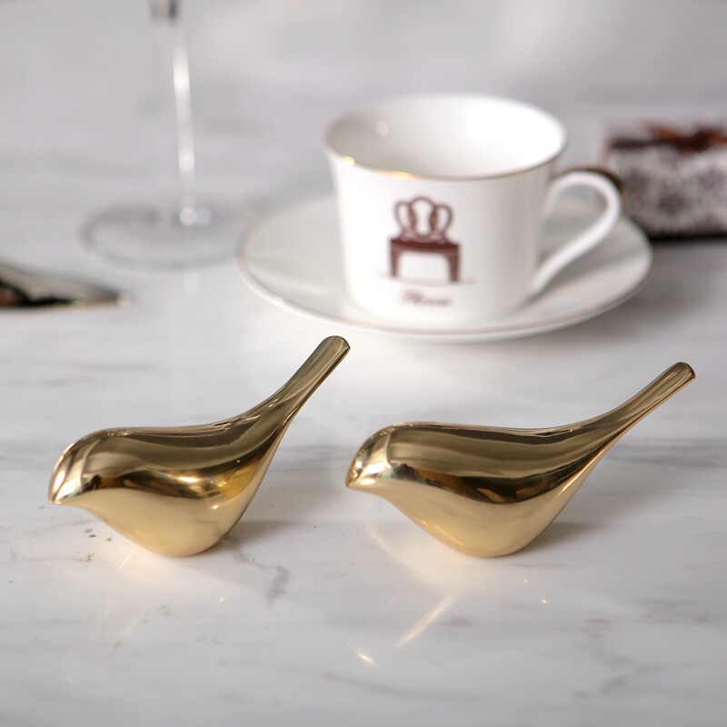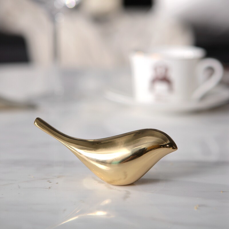 Modern minimalist creative home model small bird copper ornaments European-style living room study bookcase ornaments ornaments