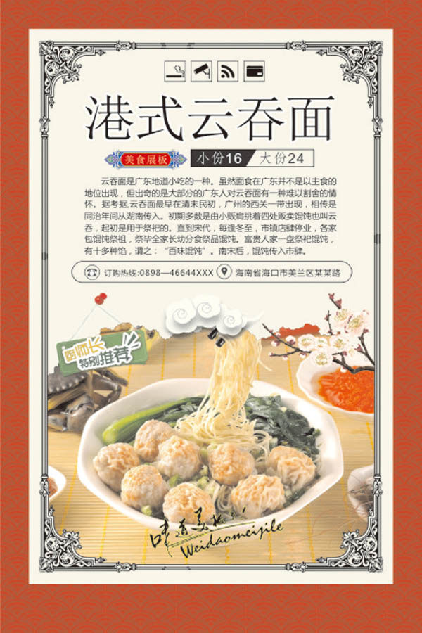 Gourmet wonton self-adhesive poster poster poster wall sticker background custom design inkjet photo mural painting sticker