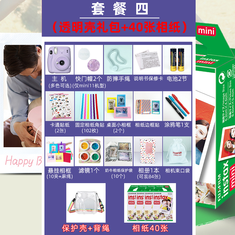 Official standard + 10 pieces of photo paper Official standard + 20 pieces of photo paper (package 1) Transparent shell gift pack (package 2) Transparent shell gift pack + 10 pieces of photo paper (package 3) Transparent shell gift pack + 20 pieces of photo paper (package 4) Transparent shell gift pack + 40 pieces of photo paper (set 5) Leather set gift bag + 10 pieces of photo paper (set 6) Cow style gift bag + 10 pieces of photo paper (package 7) Minion gift bag + 10 pieces of photo paper (package 8) Storage gift box + 10 pieces of photo paper