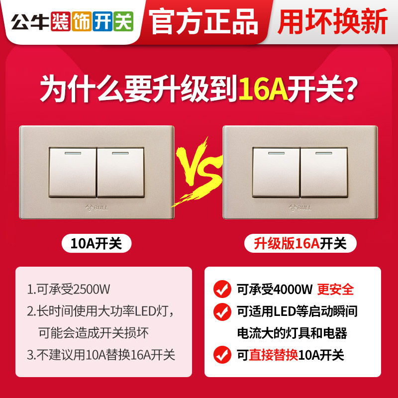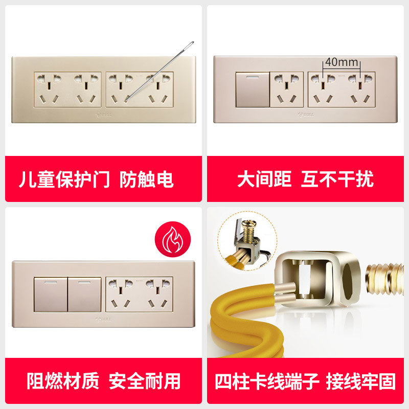118 type G04 champagne gold large socket row bull switch socket panel porous wall wall bull flagship store official flagship official website concealed household one open with 5 five holes