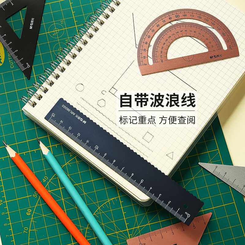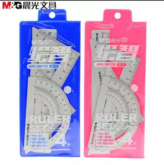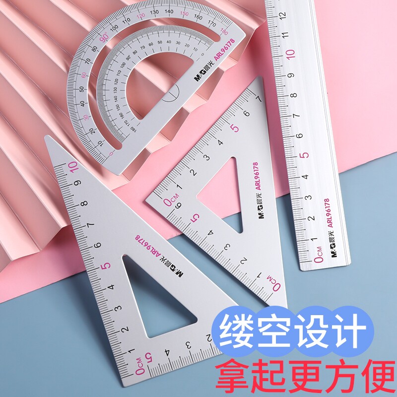 Morning light aluminium alloy sleeve ruler four pieces of sleeve ARL96178 triangular plate Protractor 15cm metal wave ruler