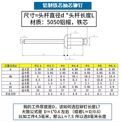 Blow rivets, aluminum rivets, aluminum round heads, cored rivets, pull rivets M2 4 3 2 4 5 6mmL