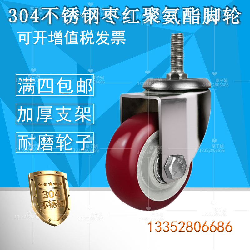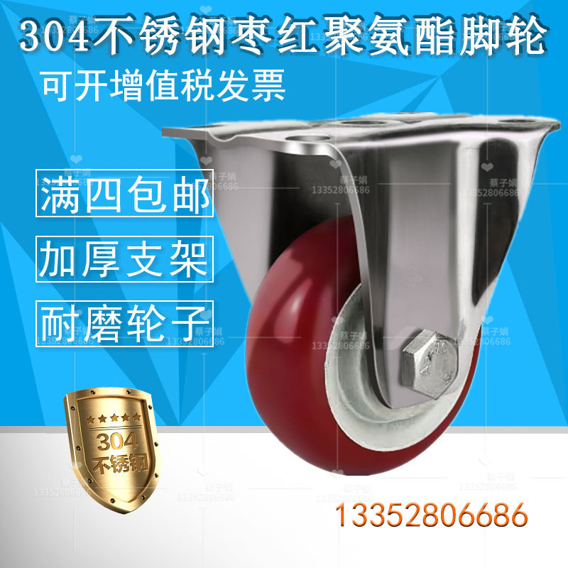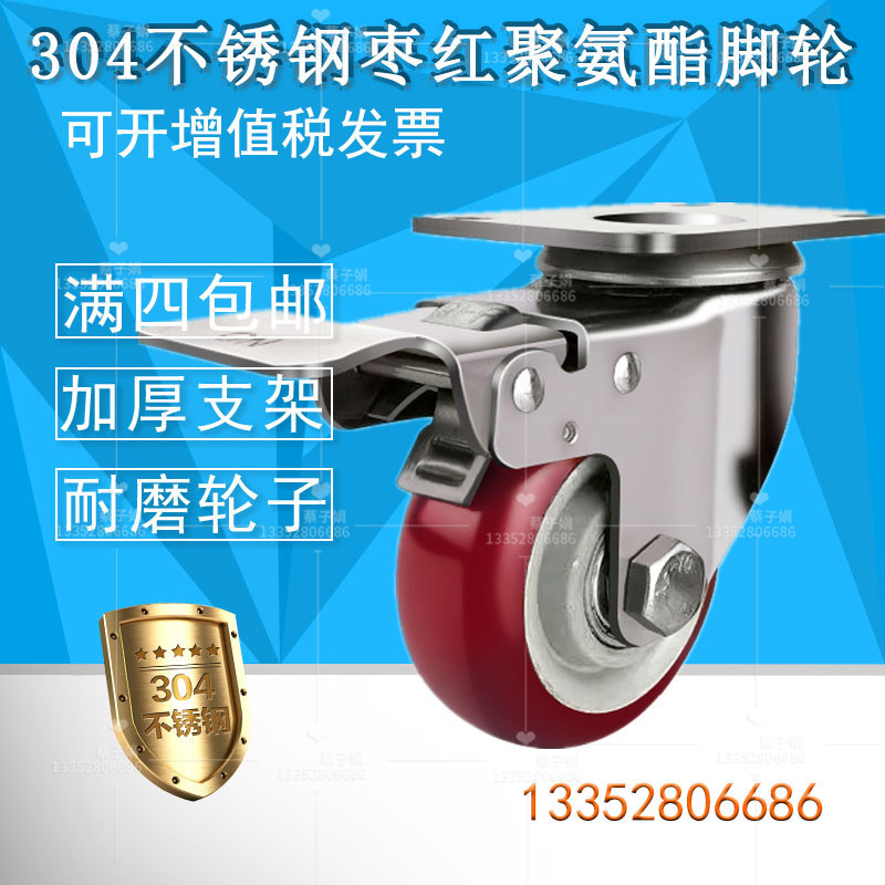 Medium-sized 304 stainless steel 3 inch 4 inch 5 inch universal wheel Jujube red double shaft casters anti-rust and anti-corrosion wheels