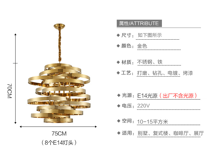 Dining Hall Chandeliers Modern Minimalist Creative Personality Designer Stainless Steel Golden Table Light Dining Room Decorated Chandeliers