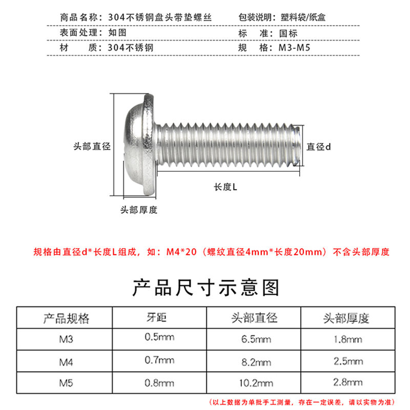 PWM 304 Stainless steel round head cross with pad screw with dielectric wire machine screw M2M2 5M3M4M5