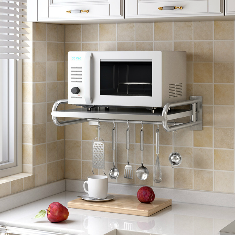 Punch-free 304 stainless steel kitchen microwave oven rack rack Wall-mounted wall-mounted oven rack bracket