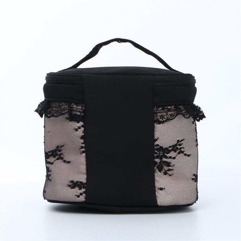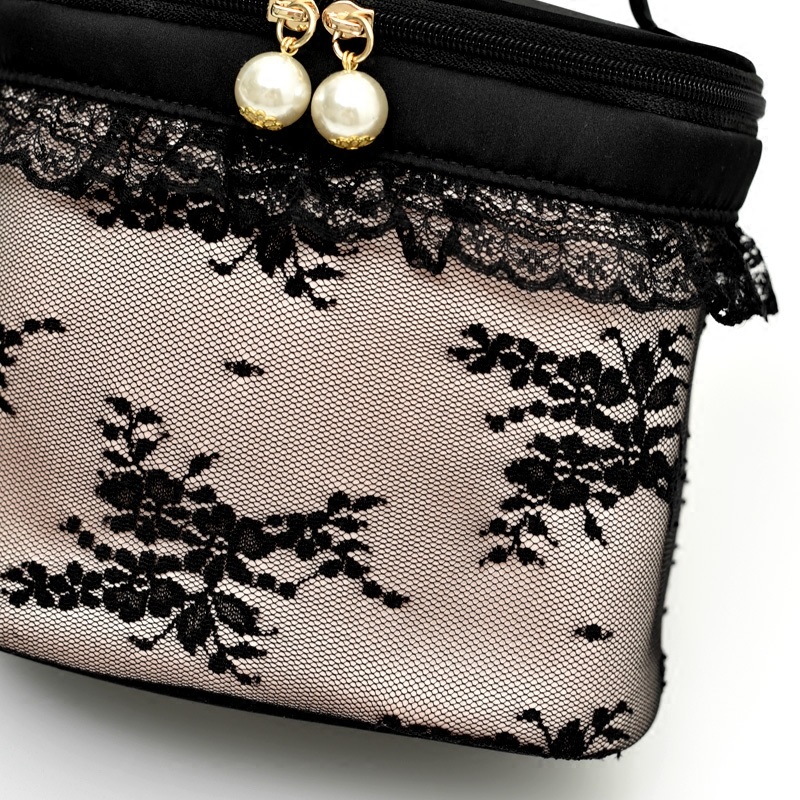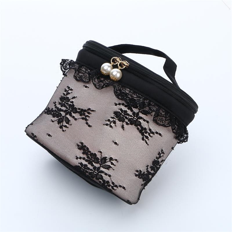 New Black Lace Carry-on Makeup Bag Tubby Lace Lace Pearl Decoration Mid-Size Makeup Bag-Taobao