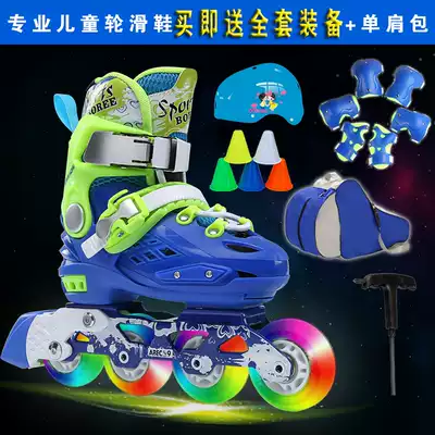 Professional children's skates flat Flower Full set men's and women's inline roller skates full Flash adjustable roller skates adult