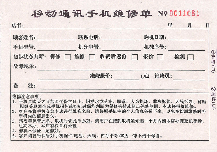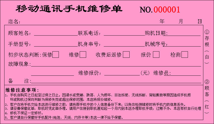 Mobile Phone Store Supplies Mobile Phone Repair Single Special Bill Two Lianz Mobile Phone Repair Bill Delivery Bill Voucher-Taobao