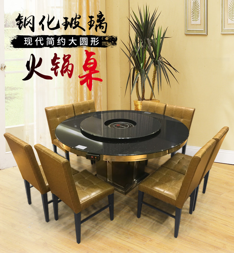 Tempered glass round hot pot table restaurant restaurant restaurant commercial sunken induction cooker integrated table and chair combination