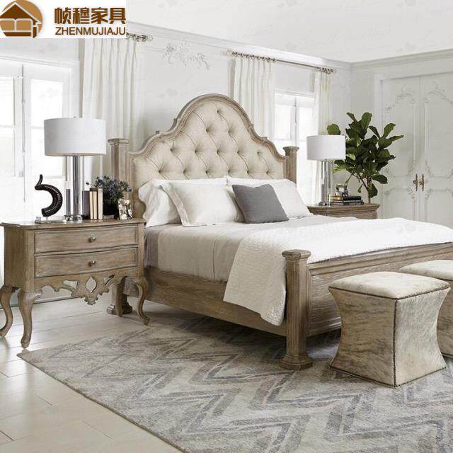 American solid wood bed 1 5 1 8 m princess bed method retro to make old double bed Nordic minimalist cloth soft bunk bed-Taobao
