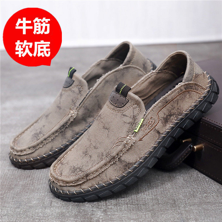 Spring Summer Old Beijing Cloth Shoes Men's Sailor Cloth Shoes Increase Code 45 46 47 A Foot Pedal Loose Casual Shoes Sloth Man Shoes Man