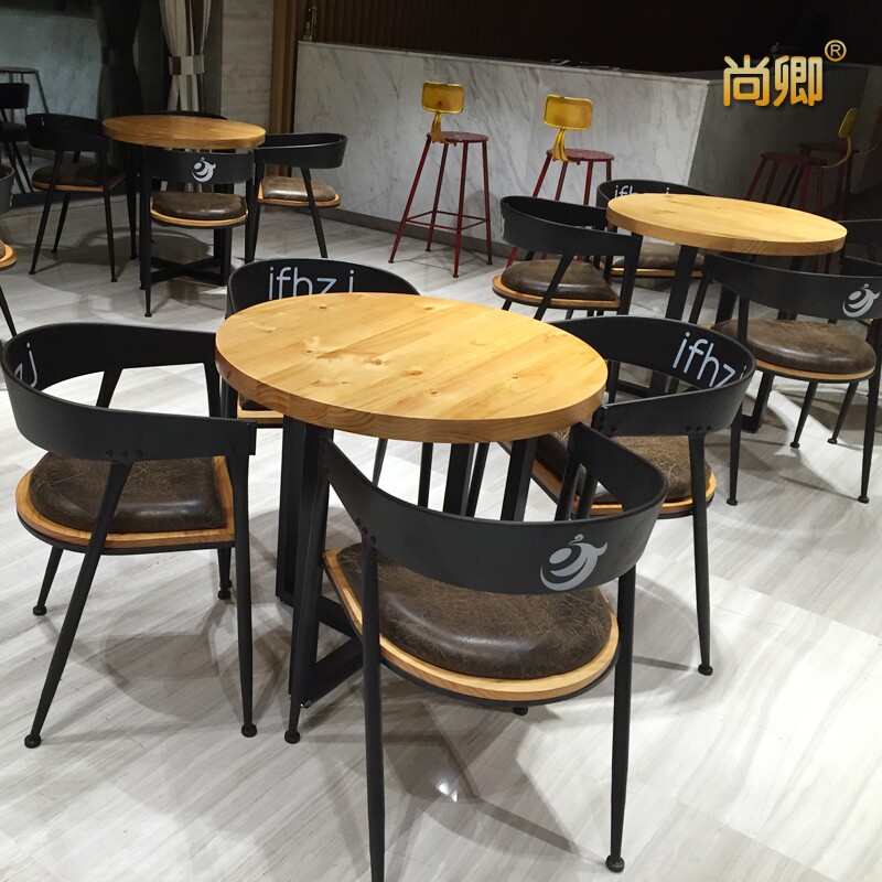 American country LOFT round table wrought iron solid wood Round Table