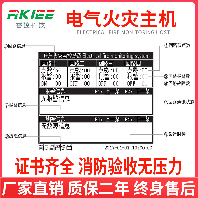Monitor Wall-mounted Backstage Host Fire Detector Host of Wall-mounted Background of Residual Electroflow Electrical Fire Monitoring Probe