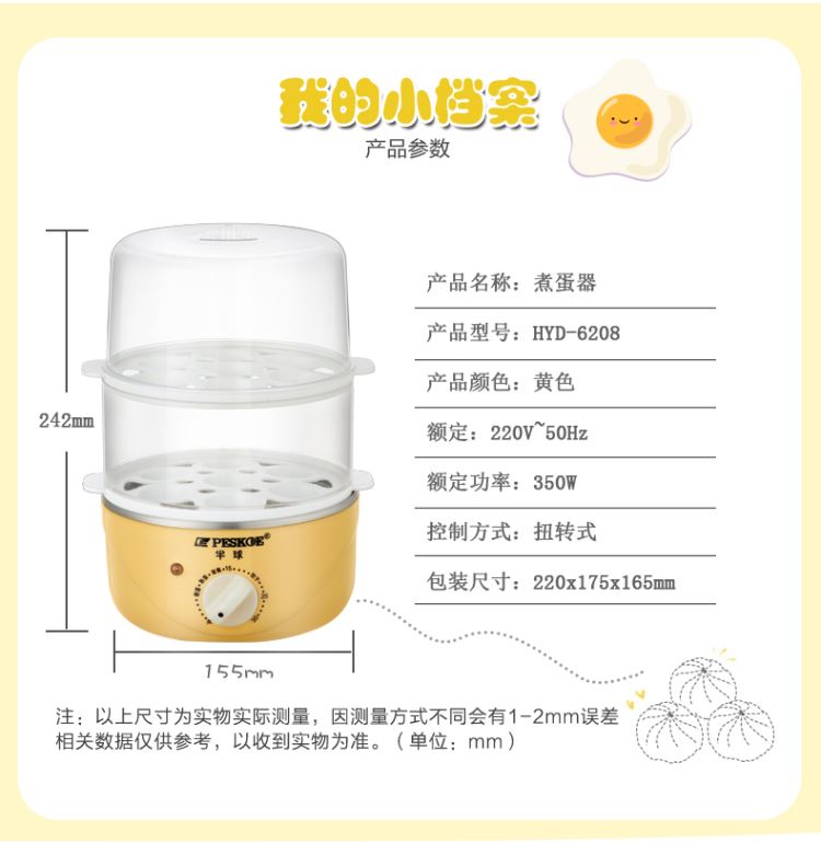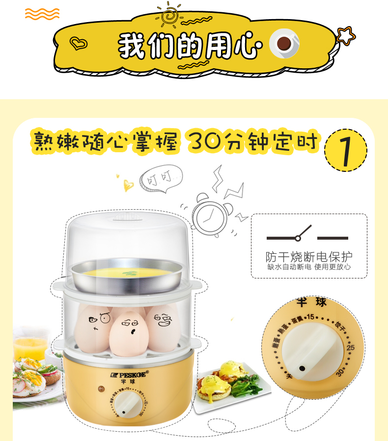 Hemisphere Steamed Egg automatic power off timed boiled egg machine stainless steel double layer boiled egg machine Small home egg spoon Mini
