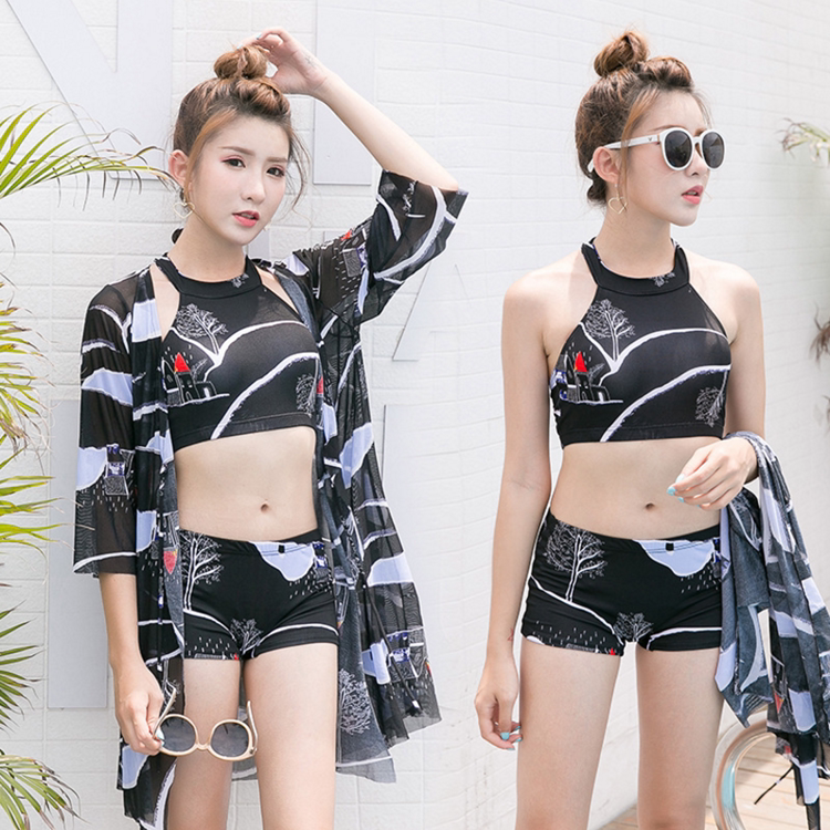 Swimsuit women three - piece Korean hot spring fragrance bikini sexy gathering horns conservative belly shade swimsuit