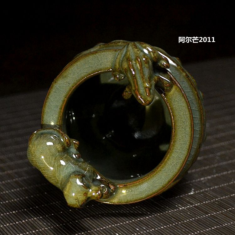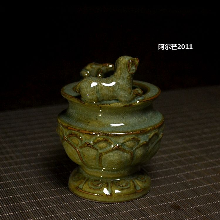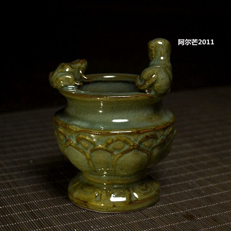 Celadon animal viewing lotus incense burner export Japanese works exposed iron tire wood kiln antique brother kiln special price