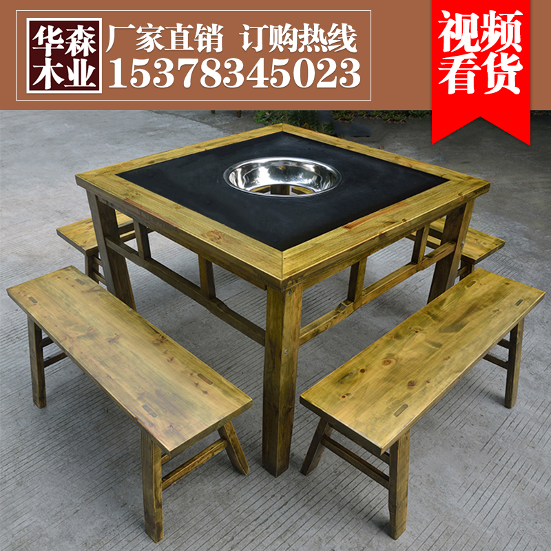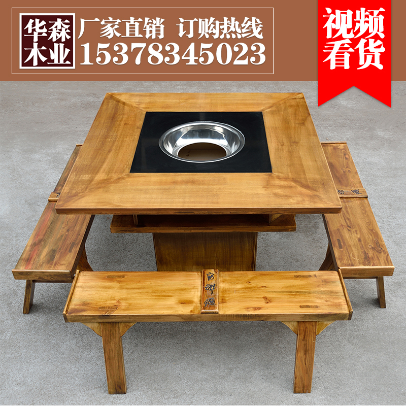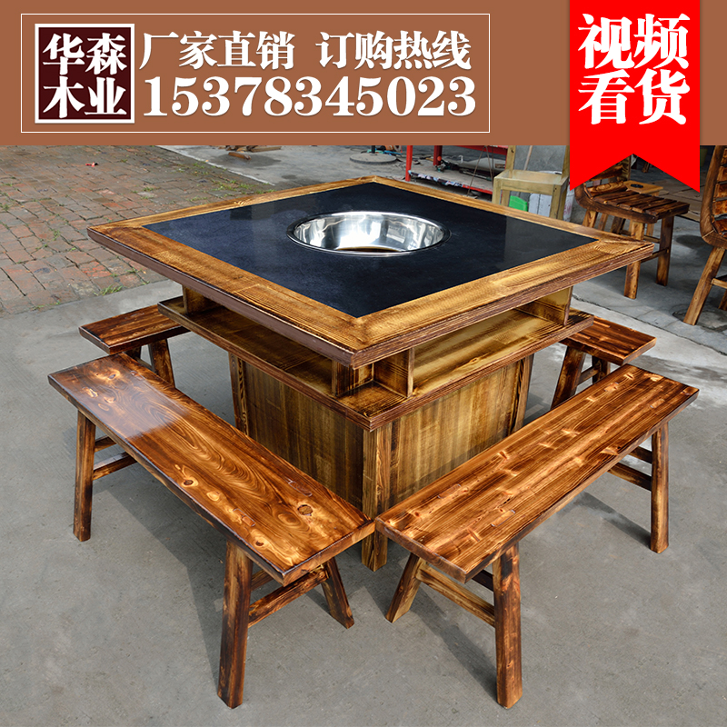 City-well string barbecue hot pot shop marble hot pot table Electromagnetic oven one restaurant commercial solid wood dining table
