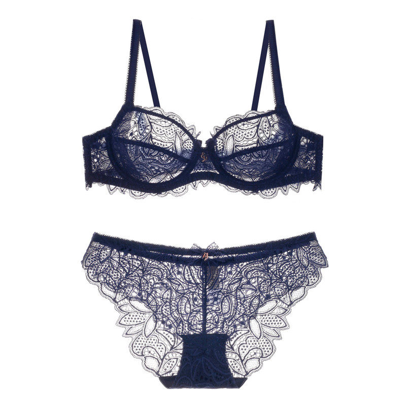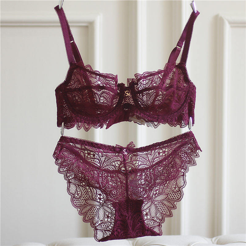 European and American retro less feminine sense bra ultrathin lace big chest underwear suit transparent and large size spring and summer new