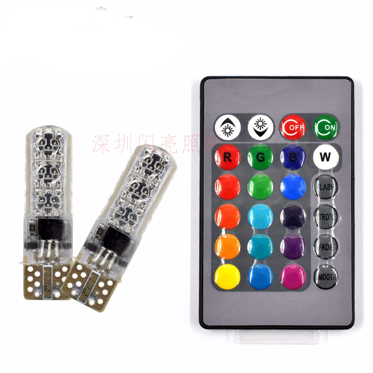 12V New T10 RGB Color Light Bulb Discoloration Blazing Blazing Remote Control Car Read Light Direction Light Indicating Wide Light
