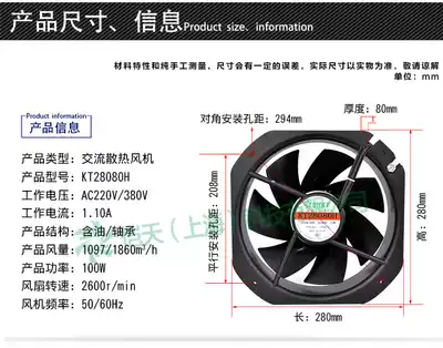 KT28080H outer rotor axial flow fan 250FZY2-S 220V 280*280*80 Cabinet fan