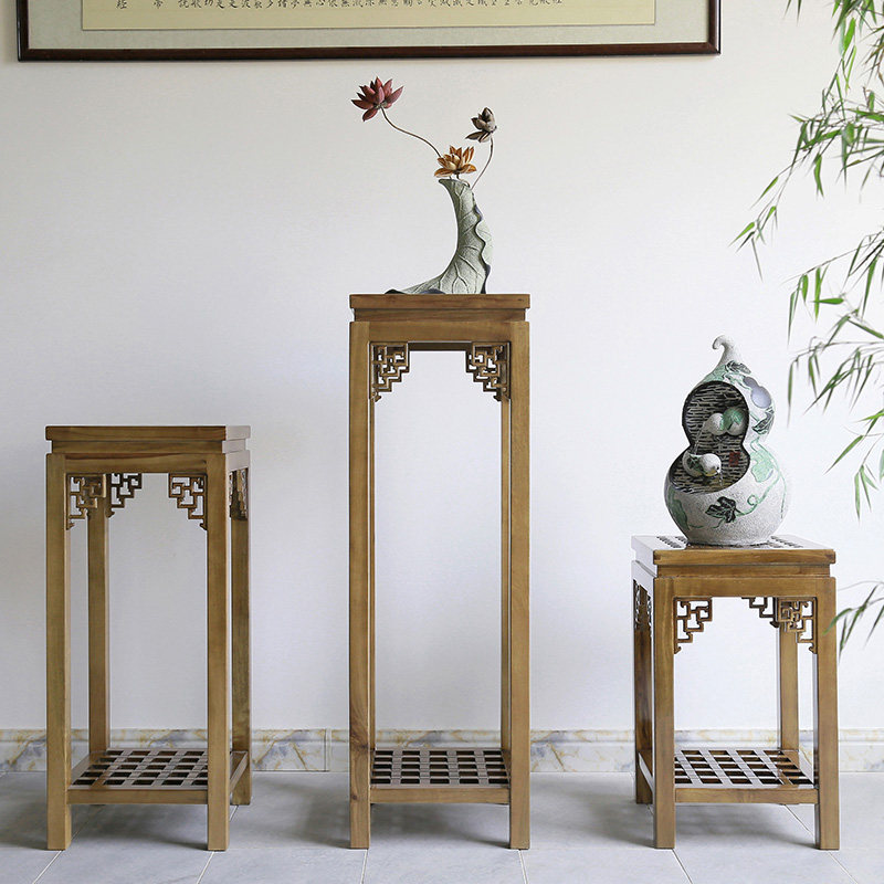 Modern Chinese solid wood flower shelf Balcony Living Room Indoor Bonsai Multilayer Bench brief Flower Several antique shelves