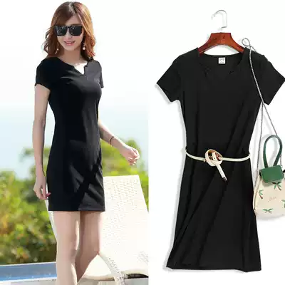 Buttock dress female summer slim hip skirt V collar sexy tight one step short skirt inside small black dress long version