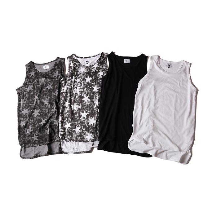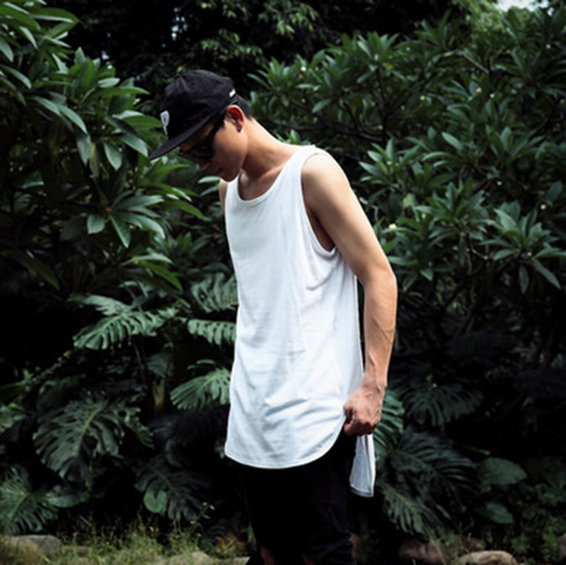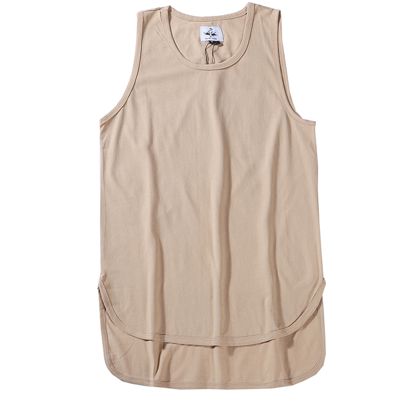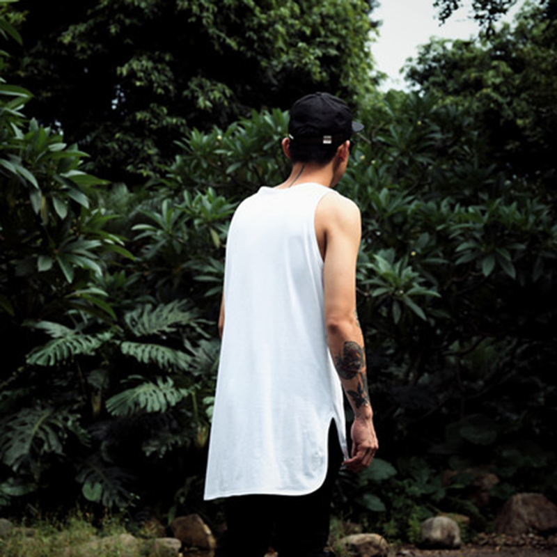 European and American high street oversize loose solid color split long version summer season vest trendy men's bottoming shirt kanye
