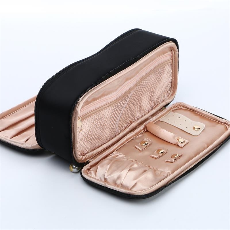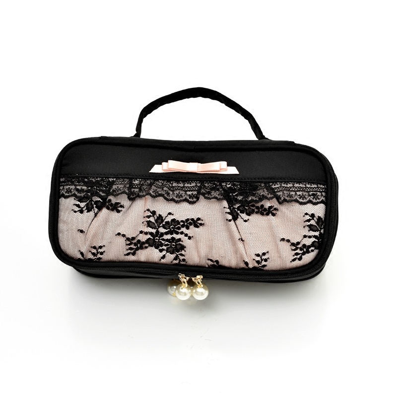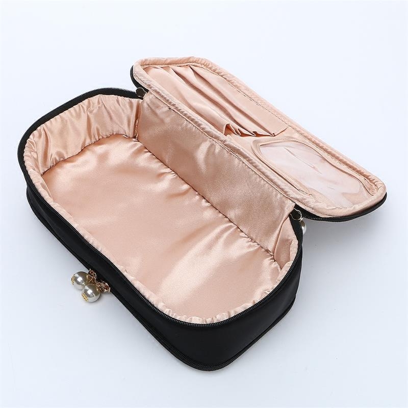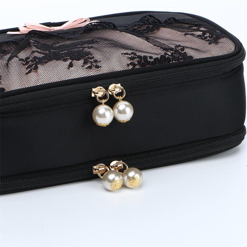 New Black Lace Rectangular Hand Handle Large Makeup Bag Double-layered Large Capacity Storage Bag Travel Jewelry Bag Multi-purpose