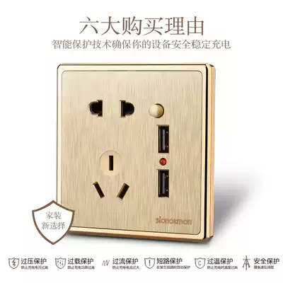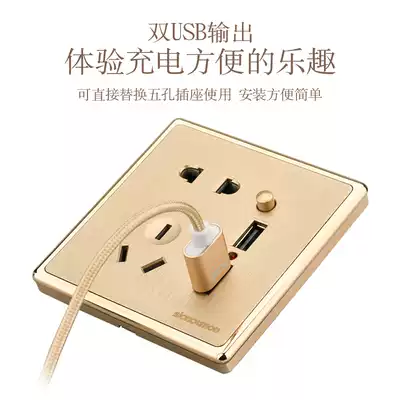 International electrotechnical large plate Champagne gold brushed wall switch socket 2 1A dual USB five-hole socket with charging support