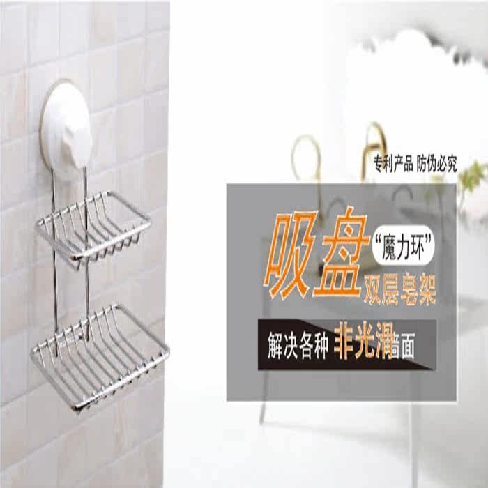 Biqing Magic Suction Cup Double Layer Soap Box Drain Shelf Bathroom Multipurpose Powerful Soap Case containing finishing rack