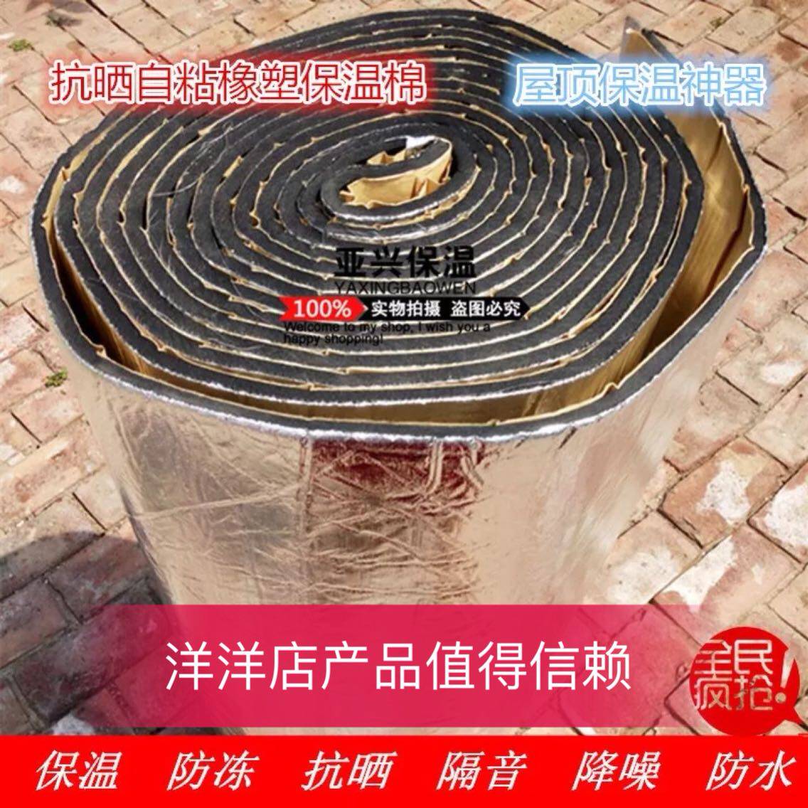 High density foil cloth self-adhesive rubber and plastic insulation flame retardant heat shield roof tank tank insulation reflective according to square sale