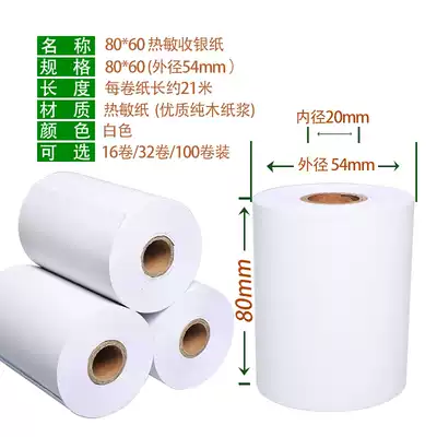80x60 three-proof thermal photocopy paper 80x80 waterproof oil-proof high temperature cash register paper roll kitchen 80mm thermal paper