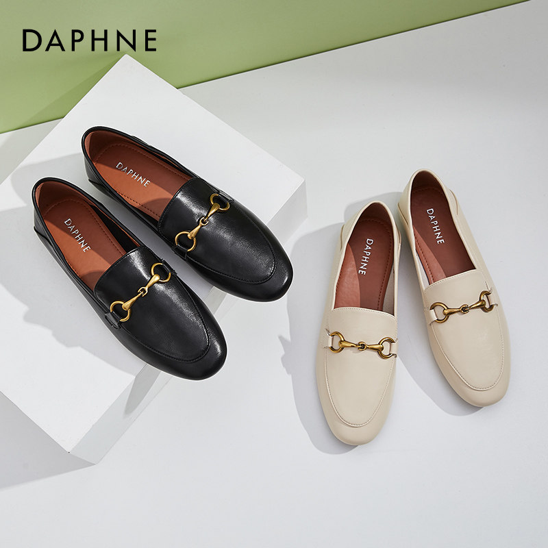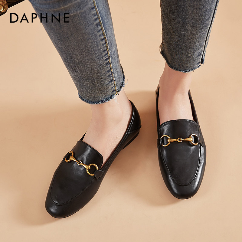 Daphne Yinglunfeng small leather shoes women's spring and autumn 2021 new bean shoes flat shoes a pedal soft sole shoes