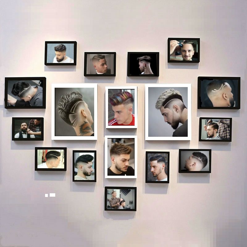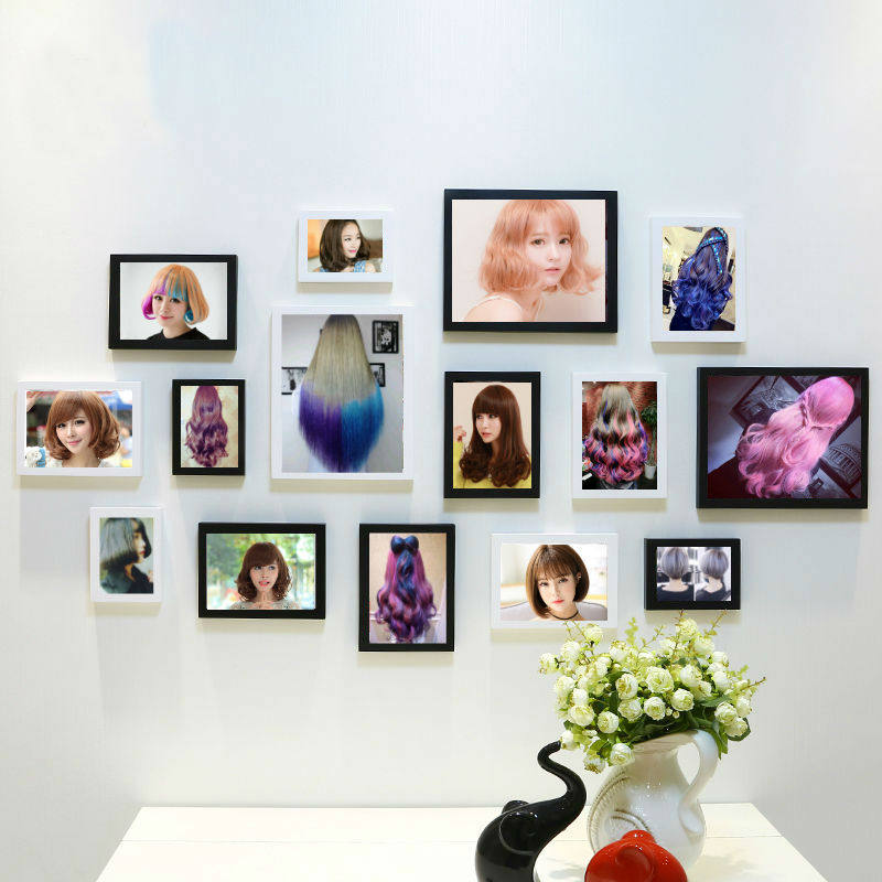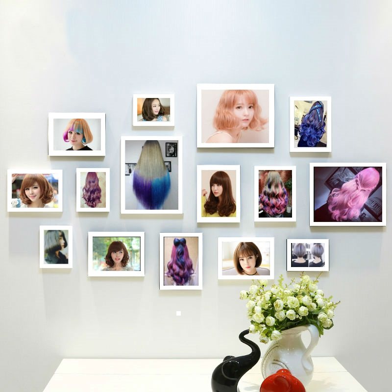 Hairdressing Shop Free of perforated Decorative Background Wall Hairdressel Shop Hung Painting Wall Hair Salon Combination Photo Frame Photo Wall European And European Bronzed