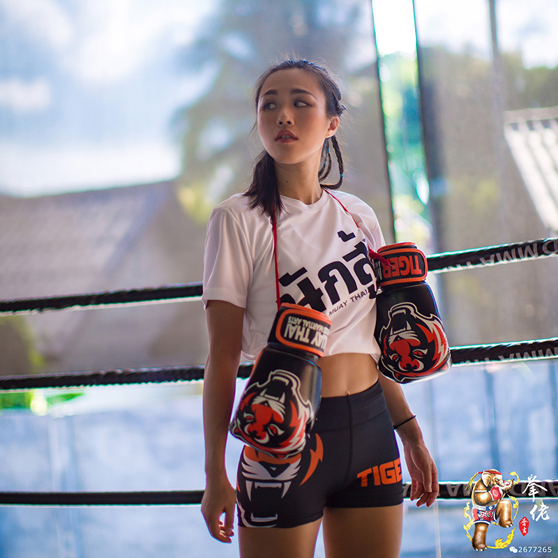 tiger muay thai tiger boxing gloves black boxing muay thai women's full sealed gloves 2017 new
