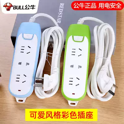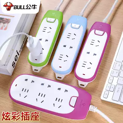 Bull socket colorful plug board with line multi-plug dormitory extension line color creative multi-function layout 3 m