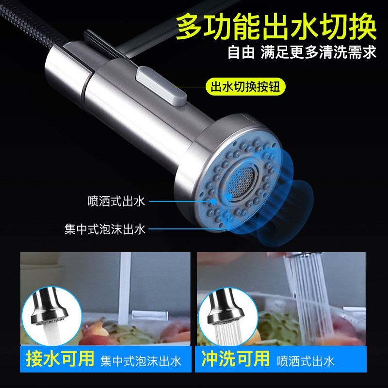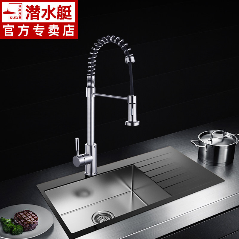 Diving boat pull-out 304 stainless steel kitchen tap hot and cold water washing basin sink lead-free tap L3045