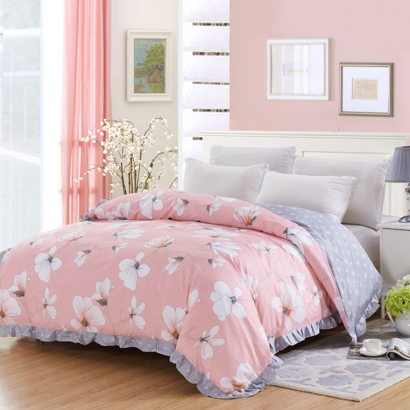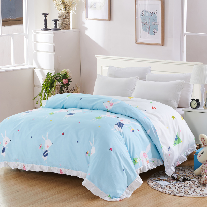 Promotion Korean pure cotton quilt cover single piece lace quilted by single all-cotton single double quilt by dormitory cartoon by hood 200 * 230-Taobao
