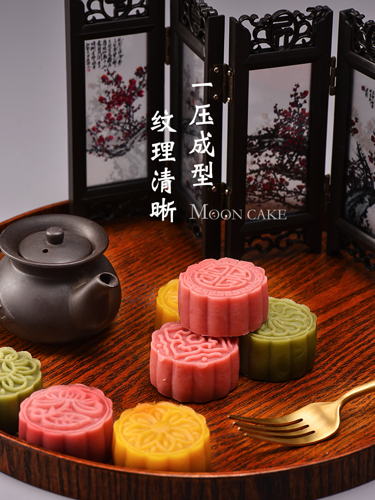 Zhanyi cartoon round mid-autumn moon cake mold Cantonese-style ice-skin peach mountain skin hand-press tool set 50g100g