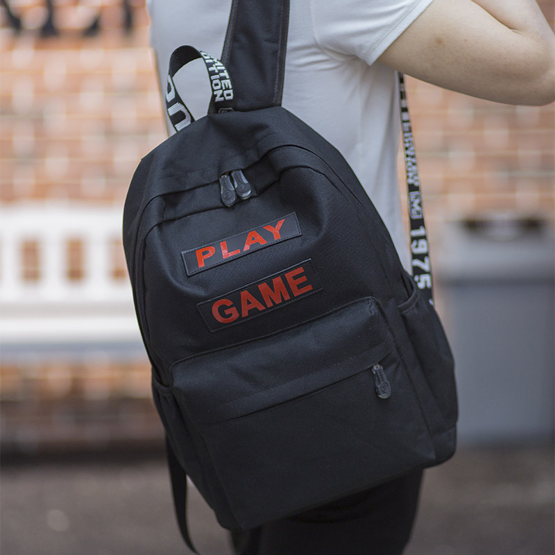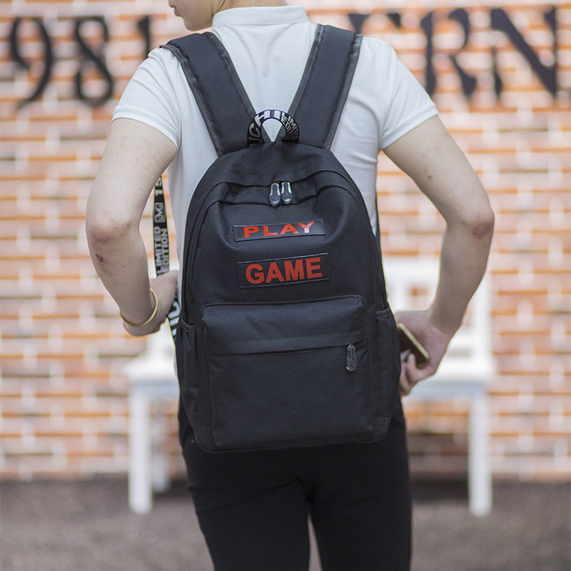 Wave Male Street Trend After the Shoulder Bag Han Edition College Wind Canvas School Bag Youth Men Black Fashion Letters